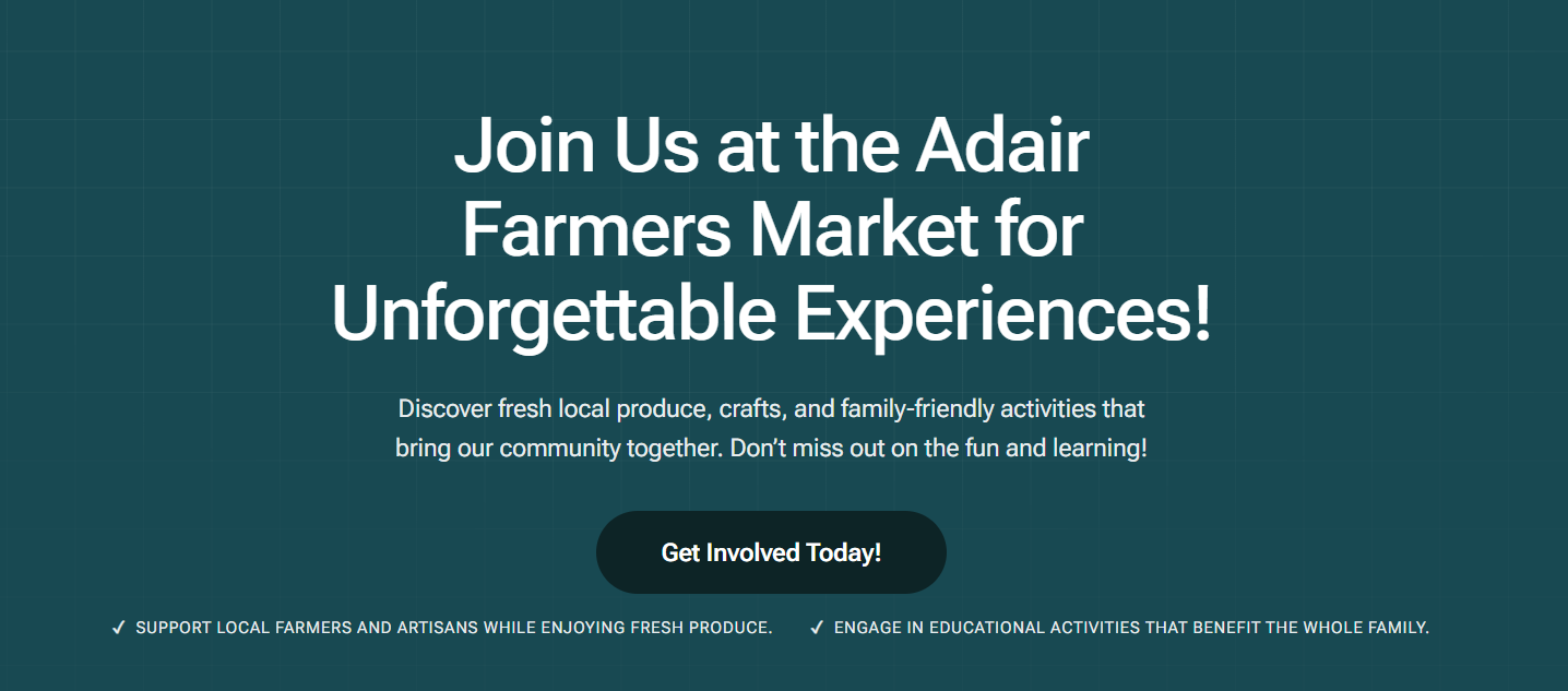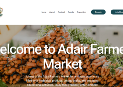 DeveloperChick designed and developed the official website for the Adair Farmers Market at https://www.adairfarmersmarket.com, creating a vibrant, search-engine-optimized (SEO) online presence that supports local vendors, community engagement, and market growth. The website was built with mobile responsiveness, fast load speeds, and keyword-focused content to improve visibility in local search results for farmers’ markets, fresh produce, handmade goods, and community events in Adair and the surrounding region. The layout is clean and easy to navigate, ensuring visitors can quickly find event details, vendor information, and ways to get involved.