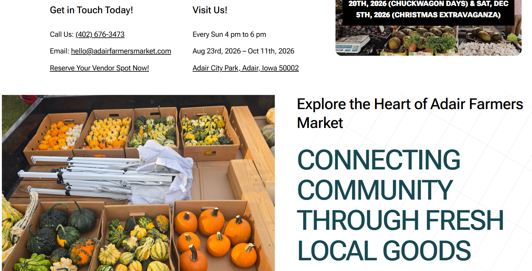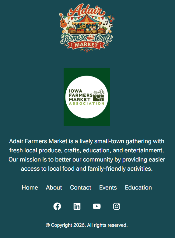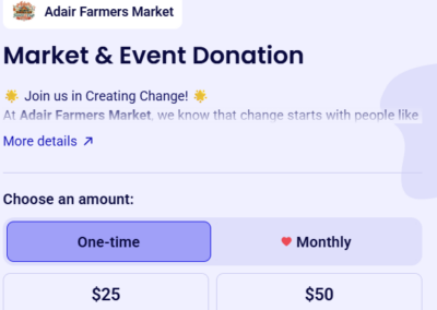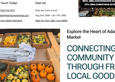 To further support the market’s nonprofit initiatives, the website includes a prominently placed donation button that integrates with Zeffy’s nonprofit fundraising software for secure donation processing and tracking. This integration allows organizers to manage contributions efficiently while maintaining transparency. A user-friendly contact page ensures vendors, sponsors, and visitors can easily submit inquiries. The result is a dynamic, SEO-driven website that not only promotes the Adair Farmers Market but also strengthens vendor participation, community support, and long-term sustainability.